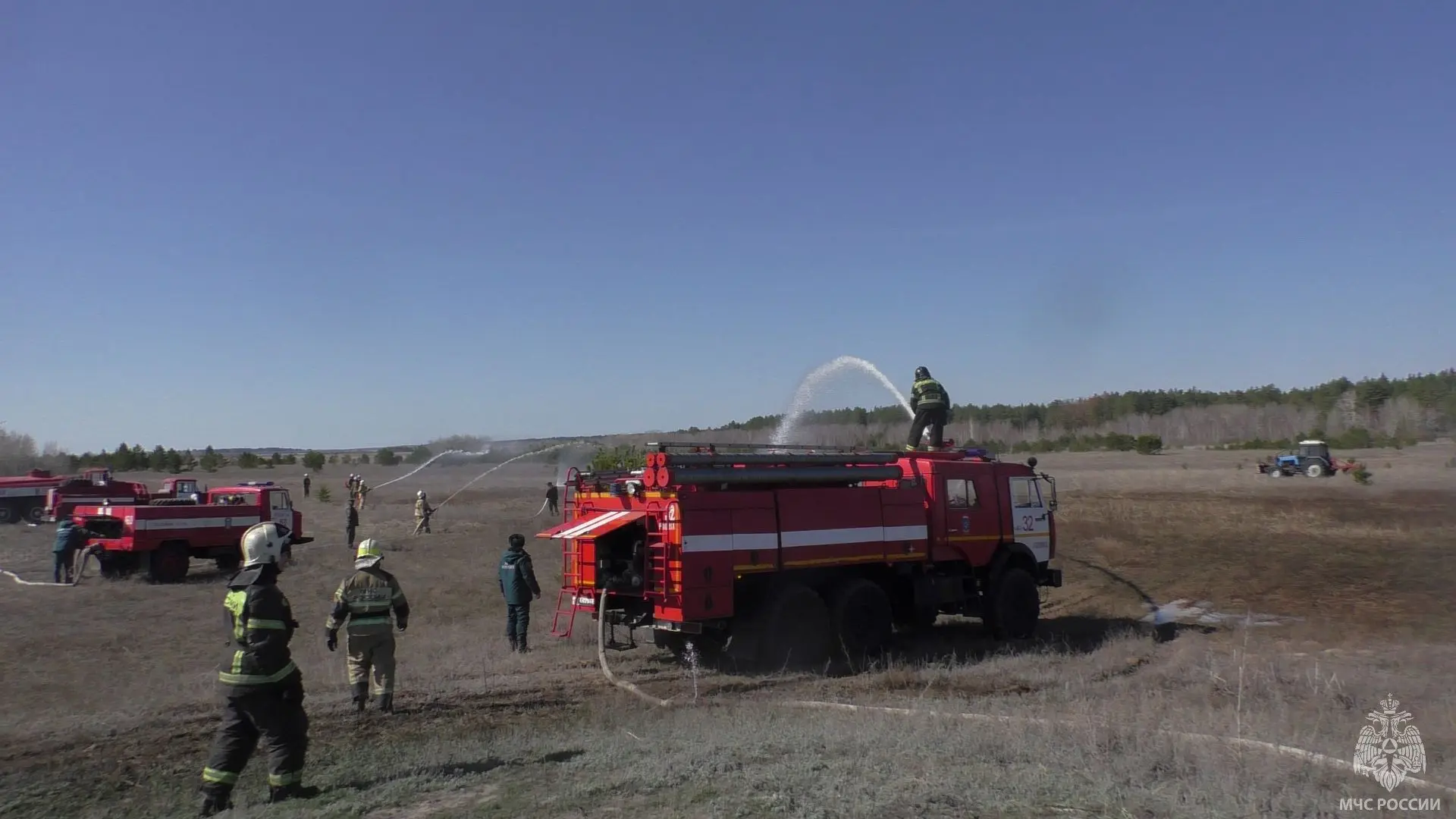 Так, бойцы 8 пожарно-спасательного отряда обеспечили тушение условного ландшафтного пожара площадью около 1000 квадратов.