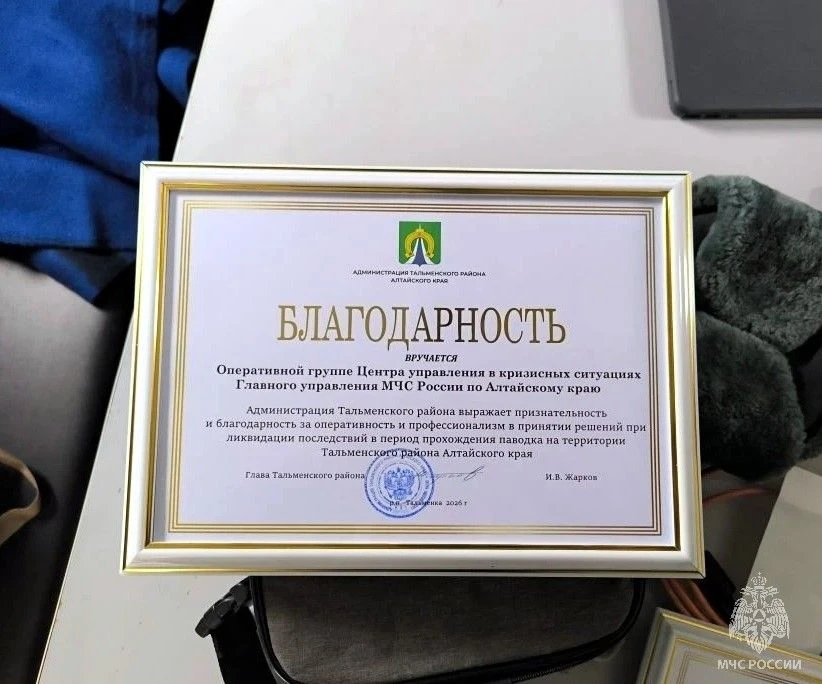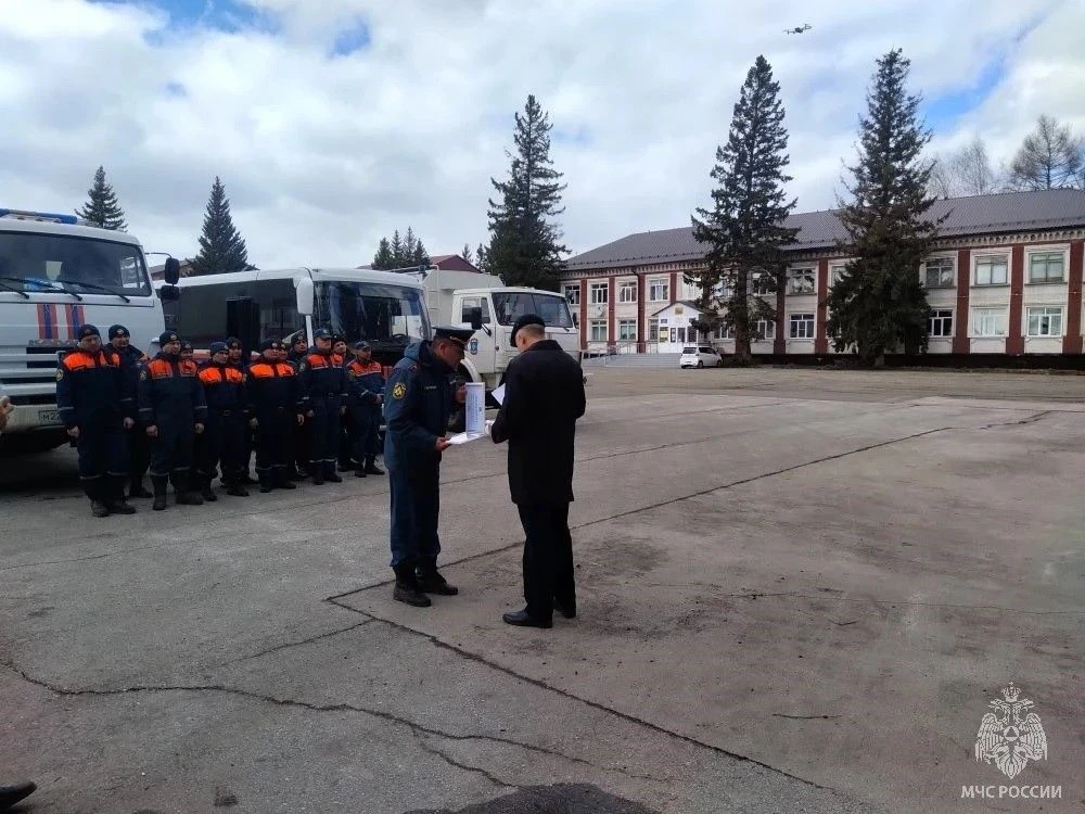 В райцентре Тальменка Тальменского района состоялось построение сотрудников ГУ МЧС России по Алтайскому краю. Благодарность специалистам аэромобильной группировки и оперативной группы от имени граждан выразил глава администрации района Игорь Жарков. Он искренне поблагодарил всех участников работы, которые в этот сложный момент пришли на выручку людям. Бойцам были вручены благодарности.