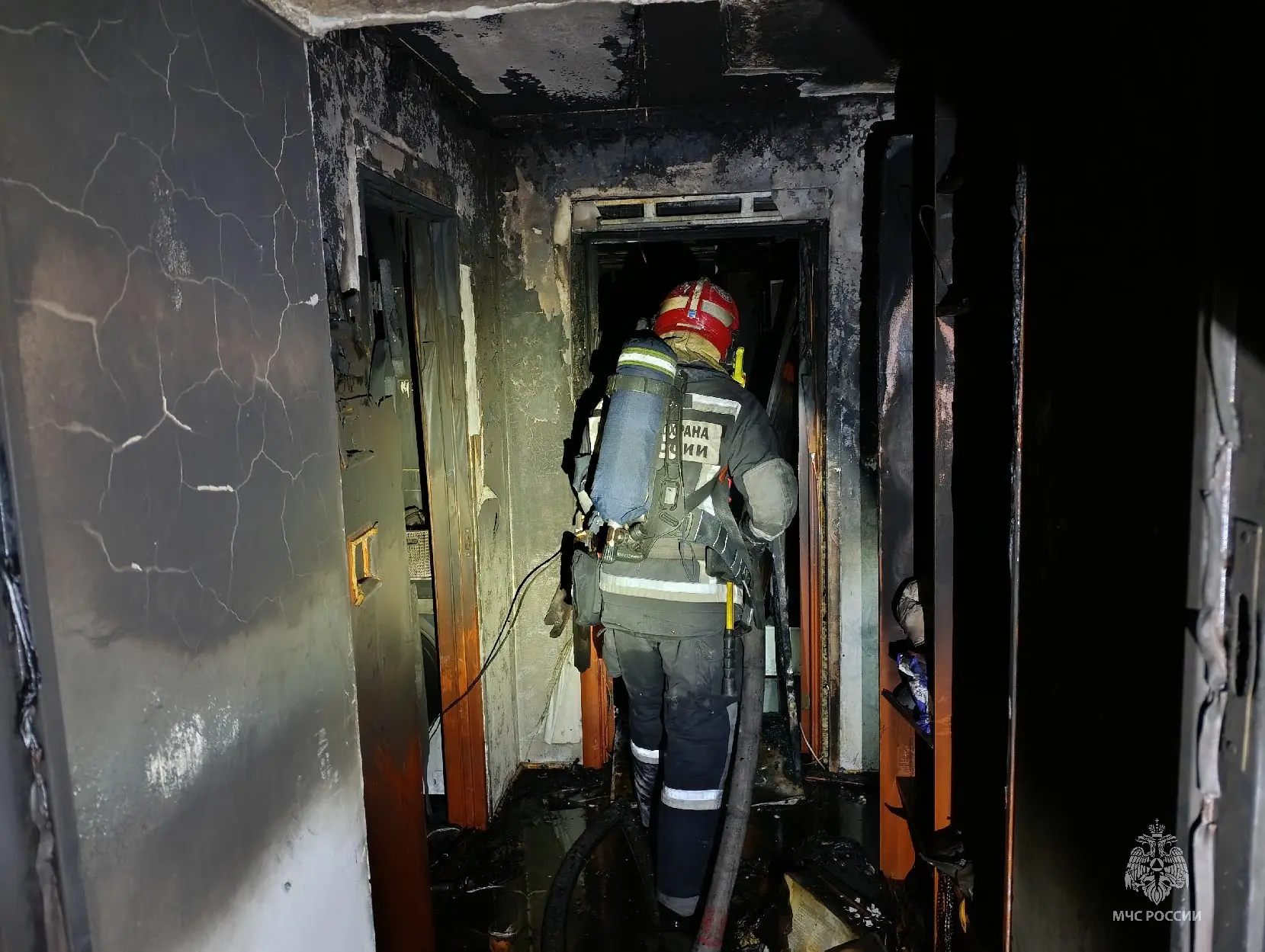 На момент прибытия первых подразделений МЧС России шел дым из окна на 5 этаже, в подъезде было сильное задымление.