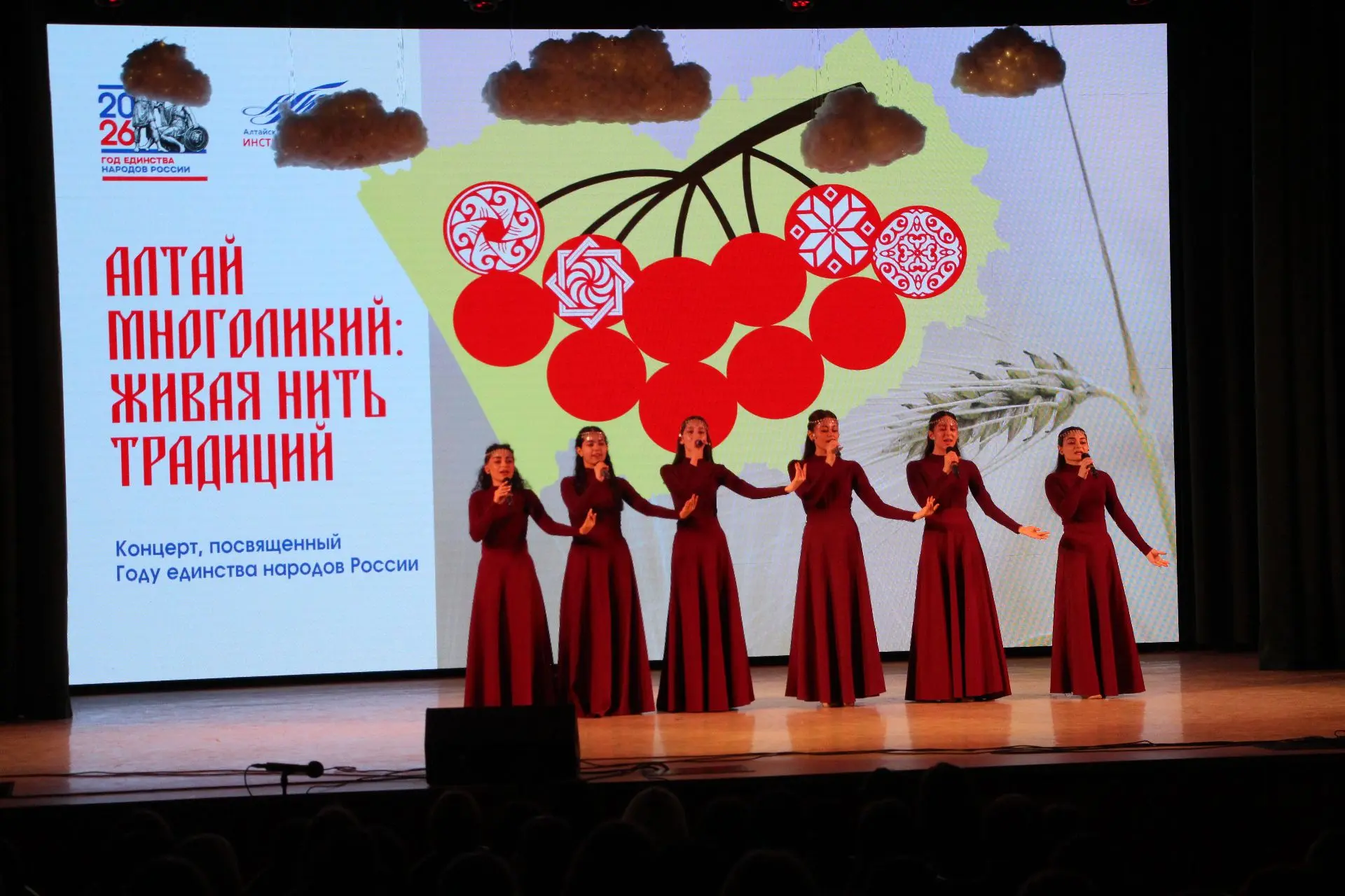 Сотрудники следственного управления Следственного комитета Российской Федерации по Алтайскому краю посетили этнокультурный концерт «Алтай многоликий: живая нить традиций», состоявшийся в Концертном зале Алтайского государственного института культуры. Мероприятие было приурочено к Году единства народов России, объявленному в целях укрепления межнационального согласия и сохранения культурного наследия многонациональной страны.