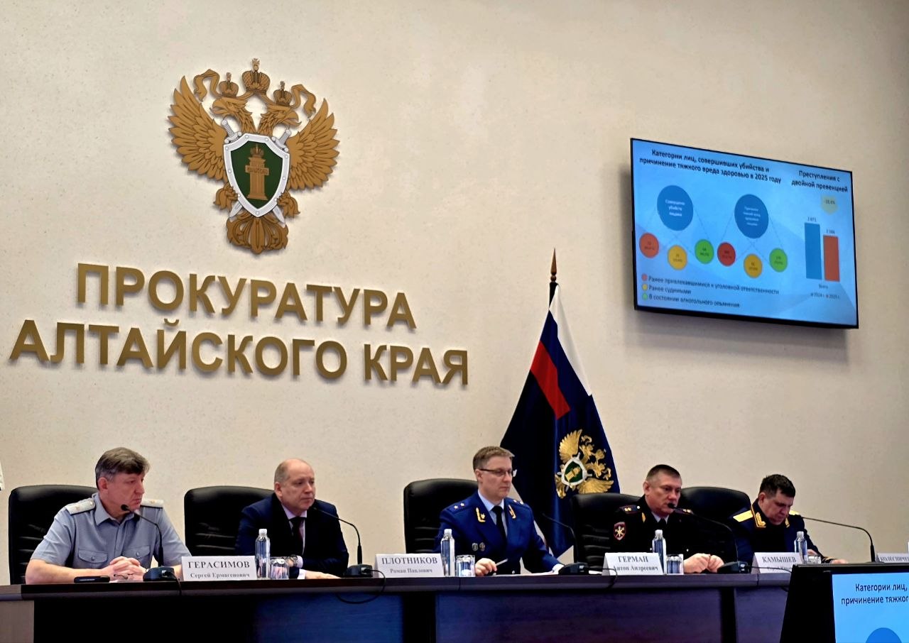 Участниками совещания озвучено, что в прошедшем году произошел незначительный рост числа убийств со 101 до 106, вовлечения несовершеннолетних в преступную деятельность. Наибольшая концентрация совершения таких преступлений зафиксирована в городах Барнауле, Бийске и Рубцовске. Большинство криминальных смертей произошло в ходе бытовых конфликтов, употребления алкоголя.