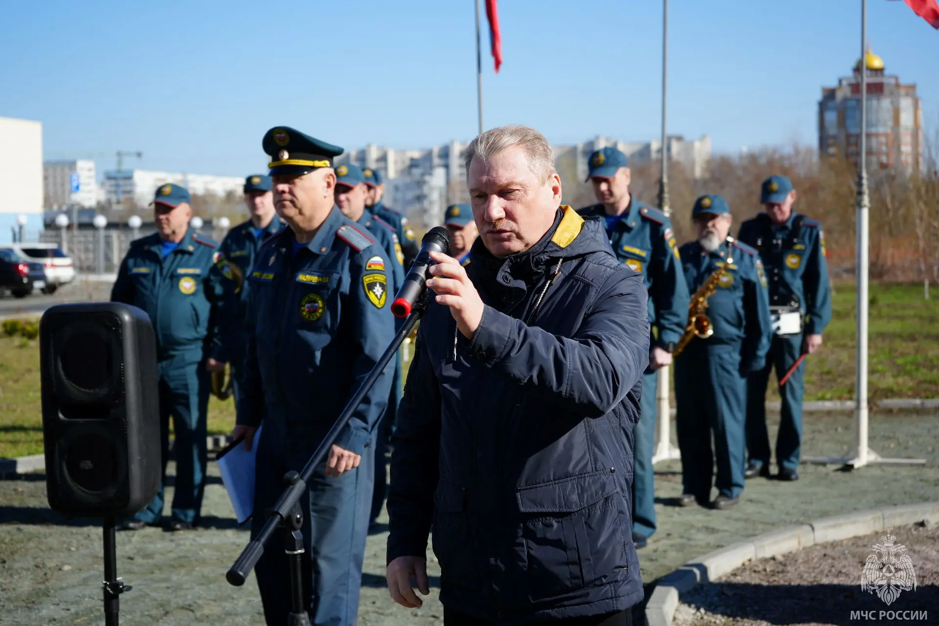 К собравшимся обратился начальник Главного управления МЧС России по Алтайскому краю Александр Макаров:
