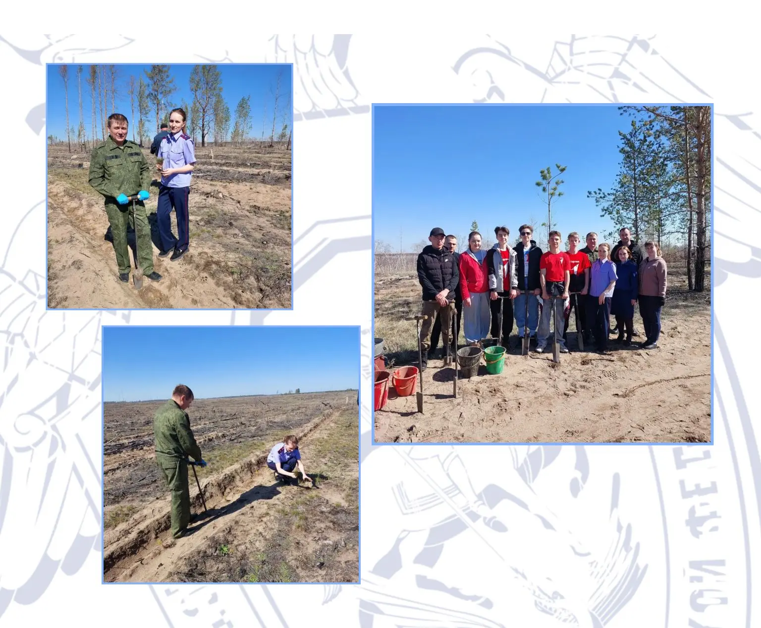 Вместе с офицерами на территории Михайловского района работали активисты «Движения Первых» и волонтеры. Общими усилиями было высажено около тысячи маленьких сосен — живых памятников героям, павшим за свободу Родины.