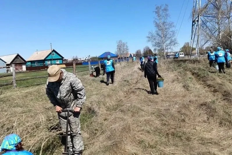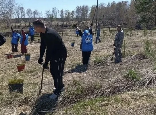 На площади более трех гектаров участники акции высадили около 9 тысяч саженцев сосны.
