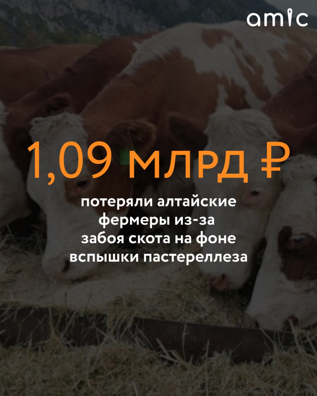 В Алтайском крае фермеры потеряли свыше одного миллиарда рублей из-за забоя скота на фоне вспышки пастереллеза, пишут «Известия» со ссылкой на исследование центра «Аналитика.Бизнес.Право».