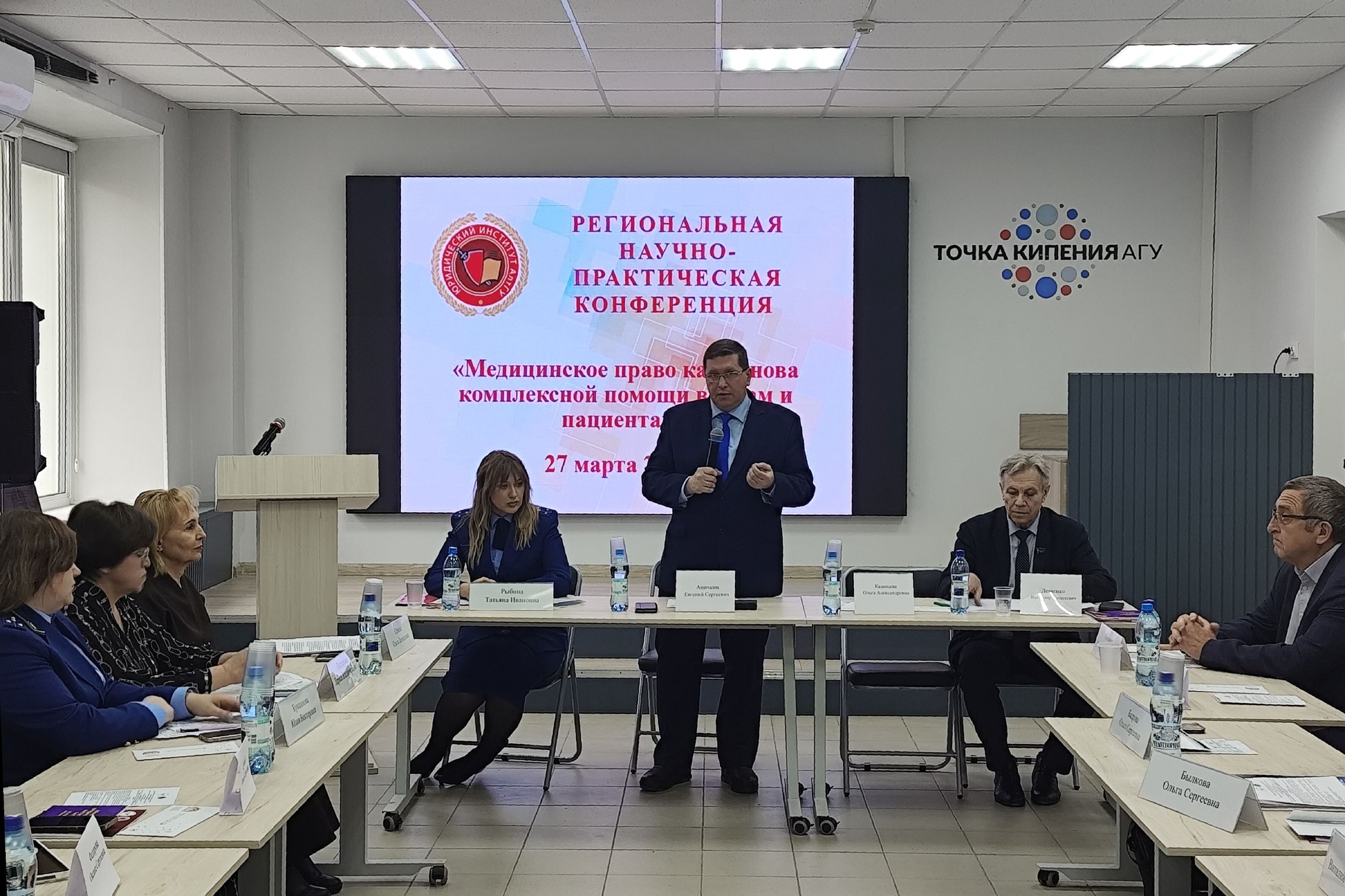 27 марта в Алтайском госуниверситете впервые прошла межрегиональная научно-практическая конференция «Медицинское право как основа комплексной помощи врачам и пациентам». В мероприятии принял участие председатель комитета АКЗС по здравоохранению Владимир Лещенко.