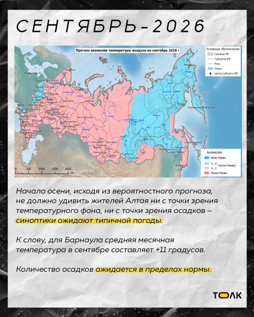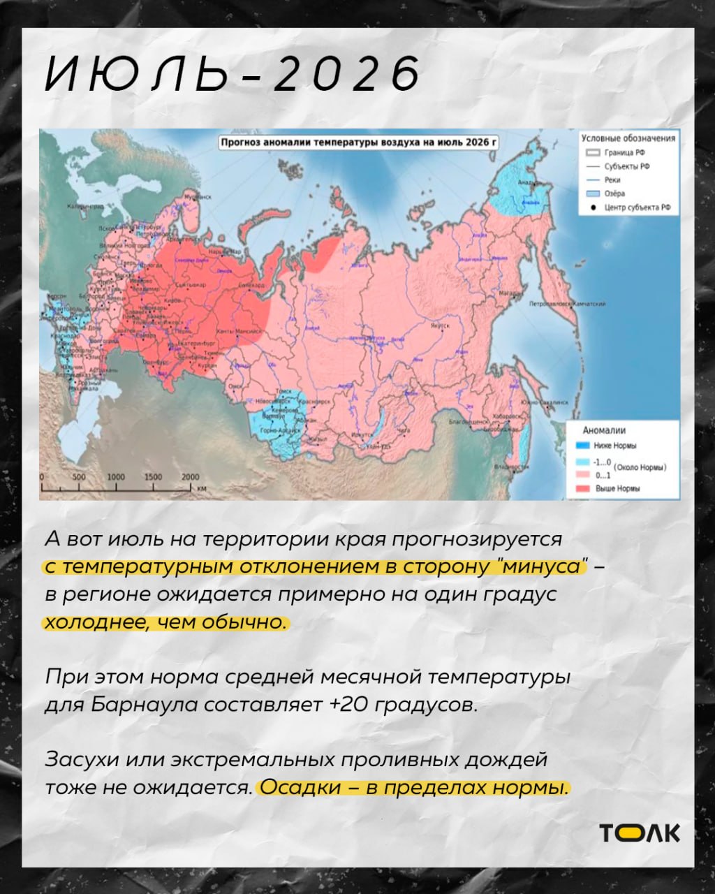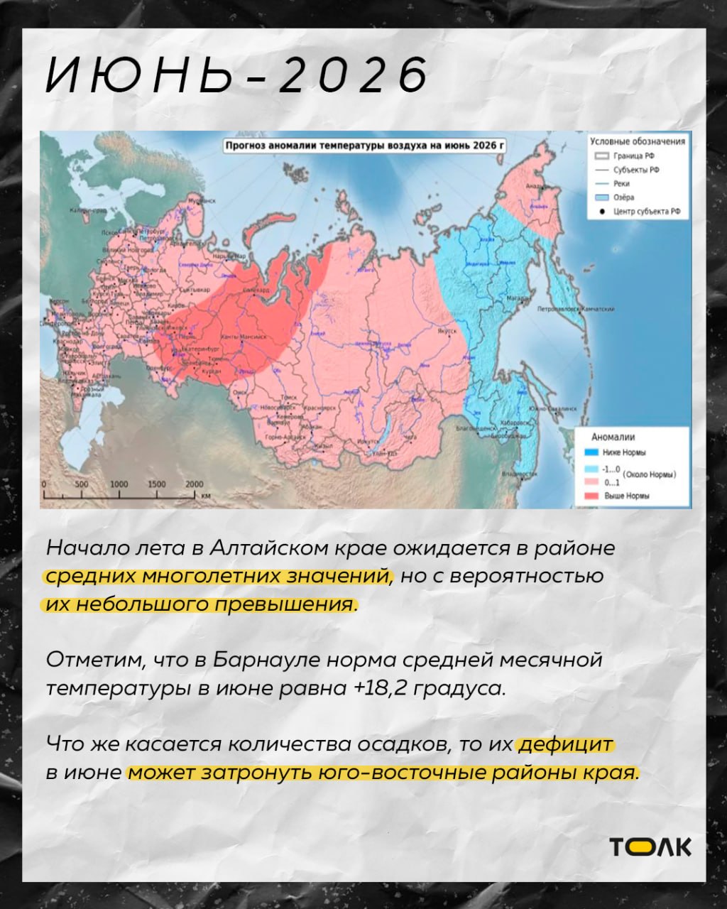 По данным синоптиков, в отдельные месяцы на территории Алтайского края температура будет превышать средние многолетние показатели. Подробнее о погоде в карточках.