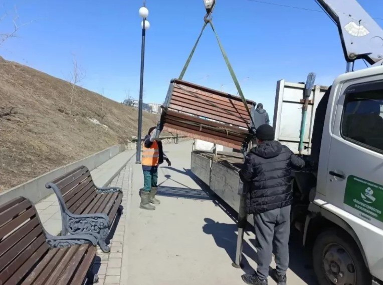 Лавочки и урны возвращают на улицы Барнаула после зимовки