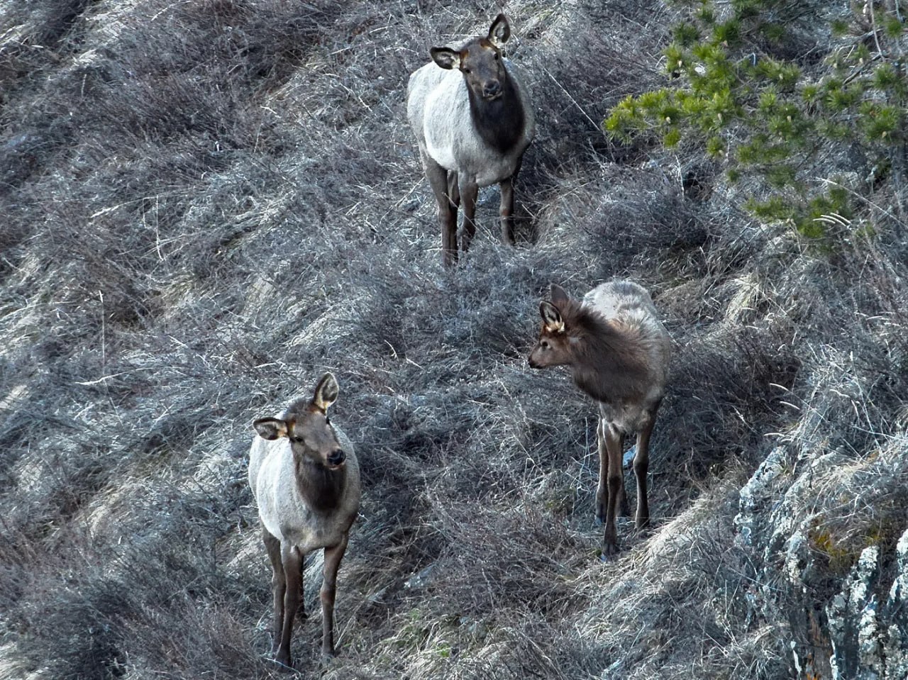 На пяти площадках обслужили 8 фотоловушек — получено 36,7 тыс. снимков. В окрестностях кордонов Чири и Беле зарегистрировали 268 маралов, косуль и кабанов, а также первых медведей после спячки.