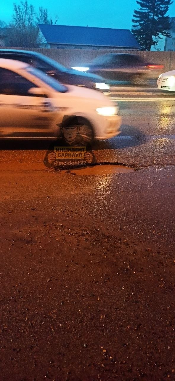 О ситуации сообщили в Telegram-канале "Инцидент Барнаул". Речь идет об участке примерно в 20 метрах от съезда с улицы Фурманова. По словам очевидцев, внешне дефект практически незаметен, так как заполнен водой и выглядит как обычная лужа.