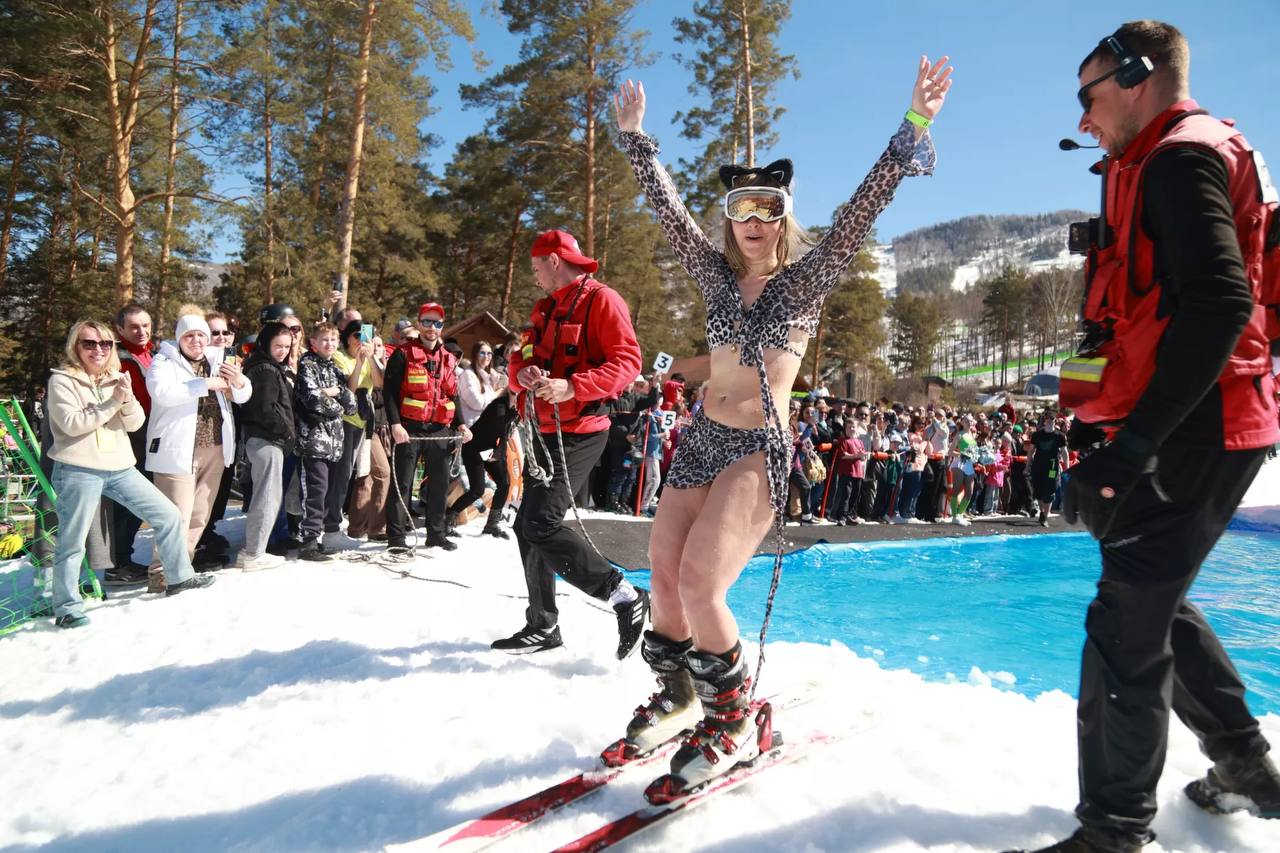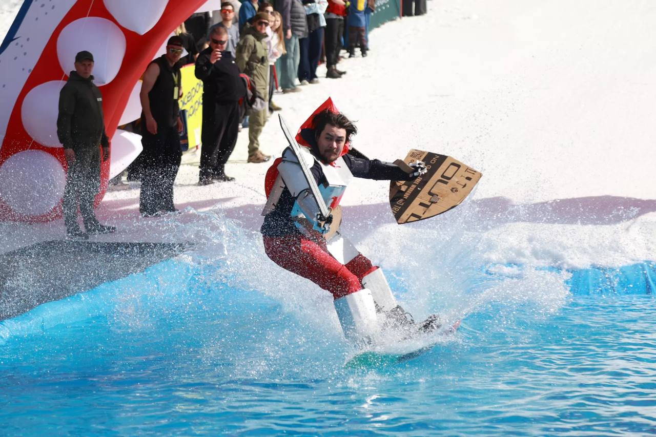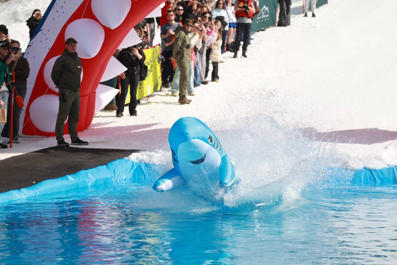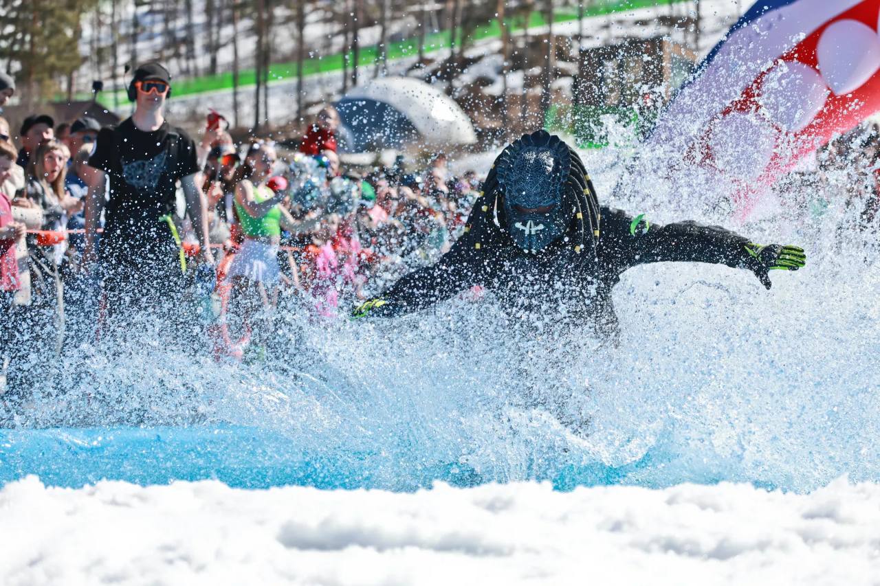 Фестиваль "Прыжок в лето" отгремел 3 и 4 апреля. Самым зрелищным моментом закрытия стал спуск райдеров с горы в бассейн. Участники устроили настоящий карнавал.