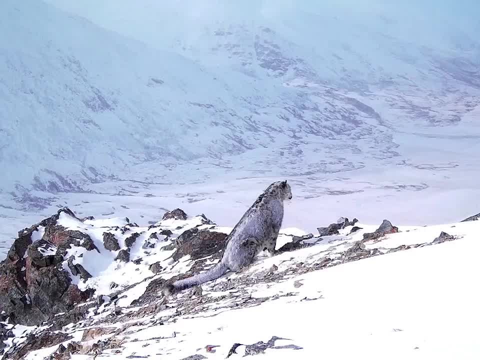 В Сайлюгемском национальном парке фотоловушка запечатлела необычное поведение снежного барса во время экспедиции на Южно-Чуйский хребет. Новый видеоматериал получили участники мониторинга численности и состояния редкого хищника, сообщили в пресс-службе нацпарка.