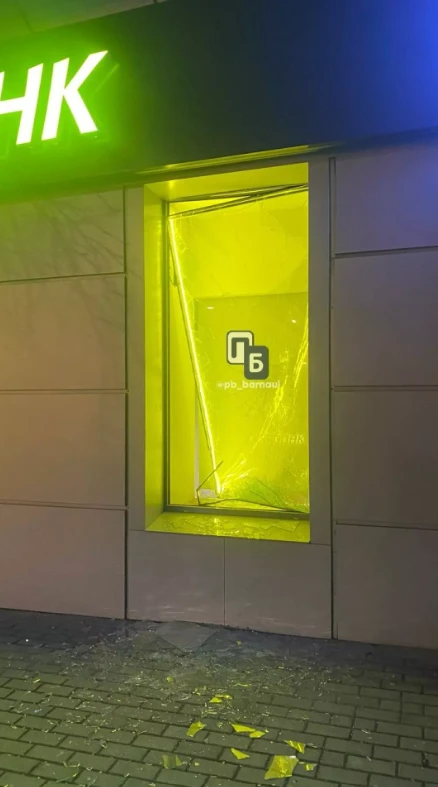 Неизвестный разбил все окна в отделении банка в центре города, сообщает telegram-канал "Подслушано Барнаул".