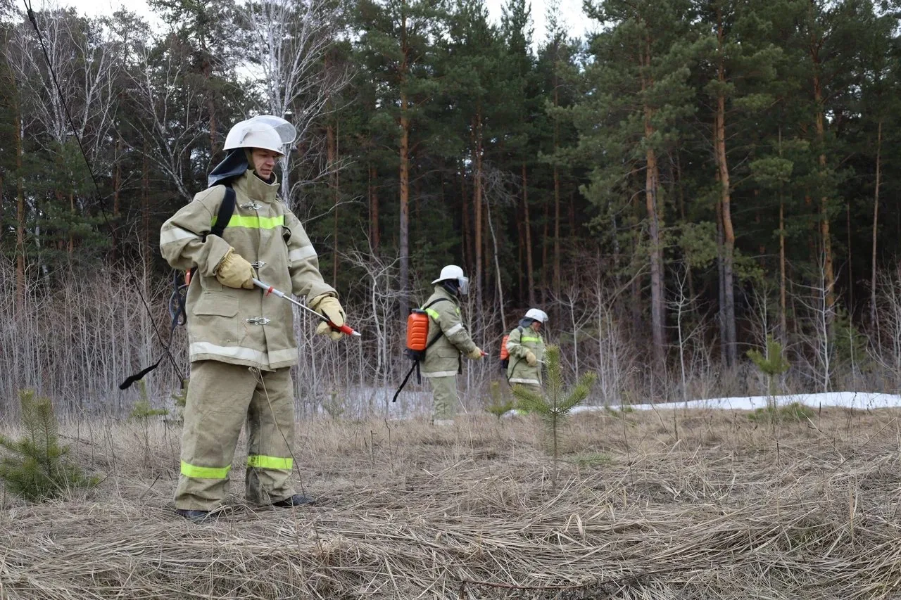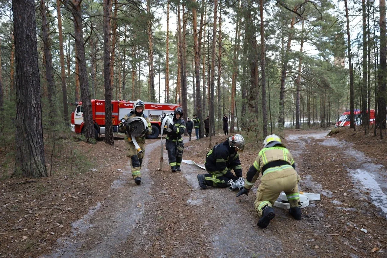 Условный лесной пожар потушили на учениях в Борзовой Заимке