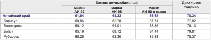 Бензин в Алтайском крае за год подорожал почти на 13%