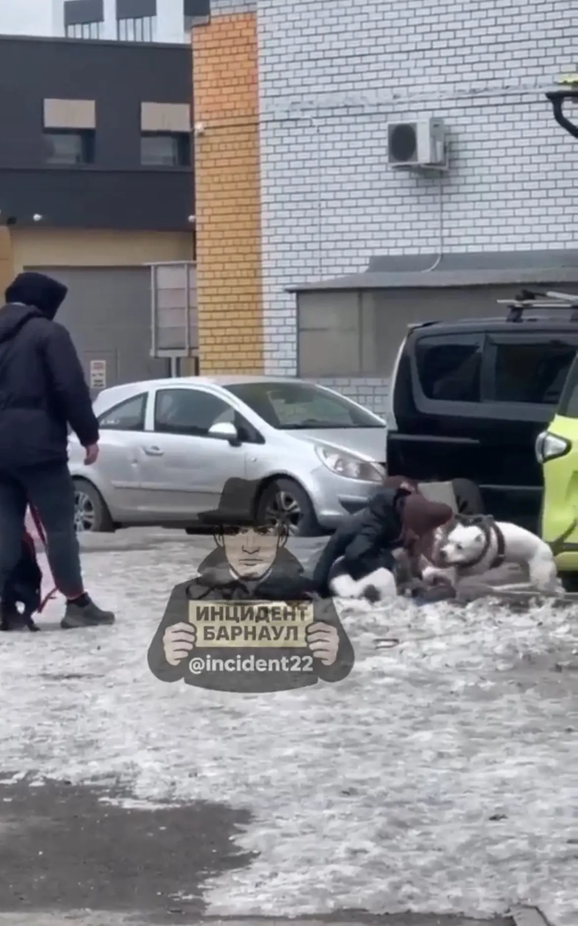 Вскоре после этого собака напала на другую. На кадрах с места происшествия видно, как хозяева безуспешно пытаются разнять дерущихся животных. При этом питбуль продолжает кусать свою «жертву».
