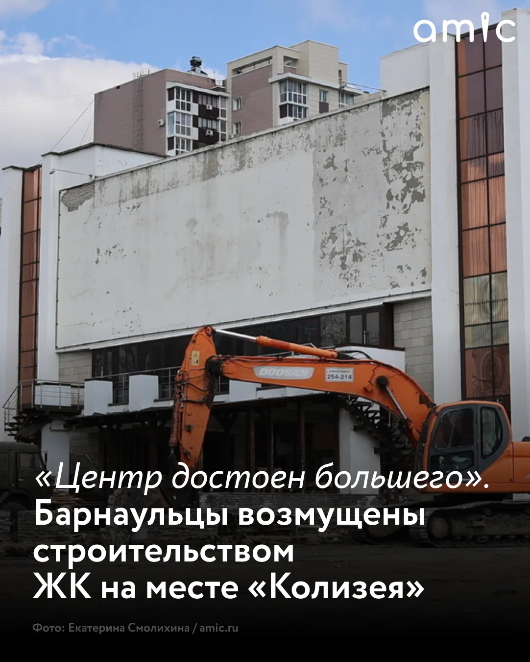 «Немало примеров, когда на месте каких-то важных зданий в Барнауле строят ЖК. Взять, к примеру, Речной вокзал, бывший кинотеатр «Искра». Видимо, стоит переживать и за другие крупные объекты в Барнауле, которые когда-то попали в частные руки. Их не хотят ремонтировать, реставрировать, трансформировать, самое простое — снести и построить дом в 25 этажей. А еще лучше — не один. Наверное, лучше перепрофилировать подобные объекты под какие-то общественные цели. Кинотеатр „Родина“ (пр. Ленина, 19) стал планетарием, в здании бывшего кинотеатра «Премьера» (ул. Крупской, 97) работает дом народного творчества. Жаль, что «Колизею» уготовили другую судьбу», — отмечает Иван.