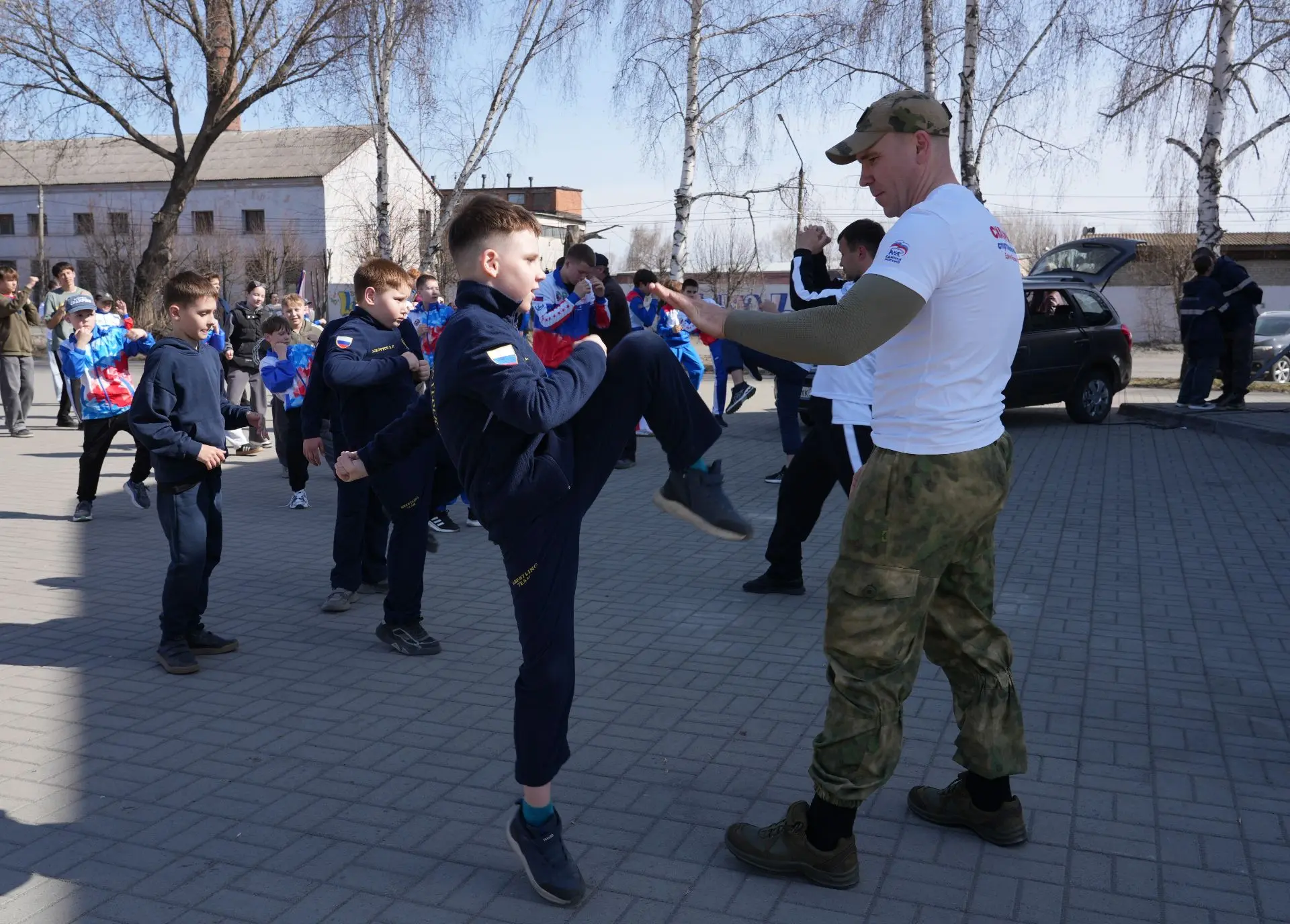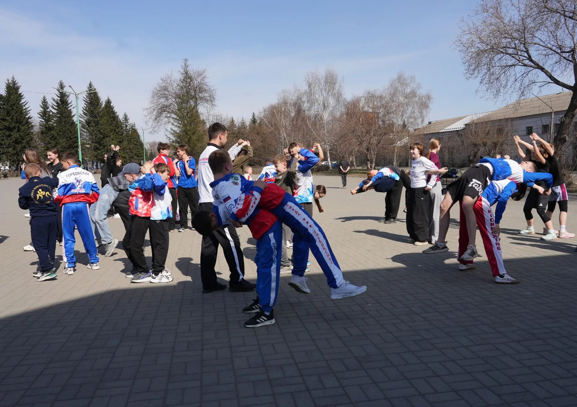 Участники выполнили упражнения с элементами бокса, кикбоксинга и греко-римской борьбы.