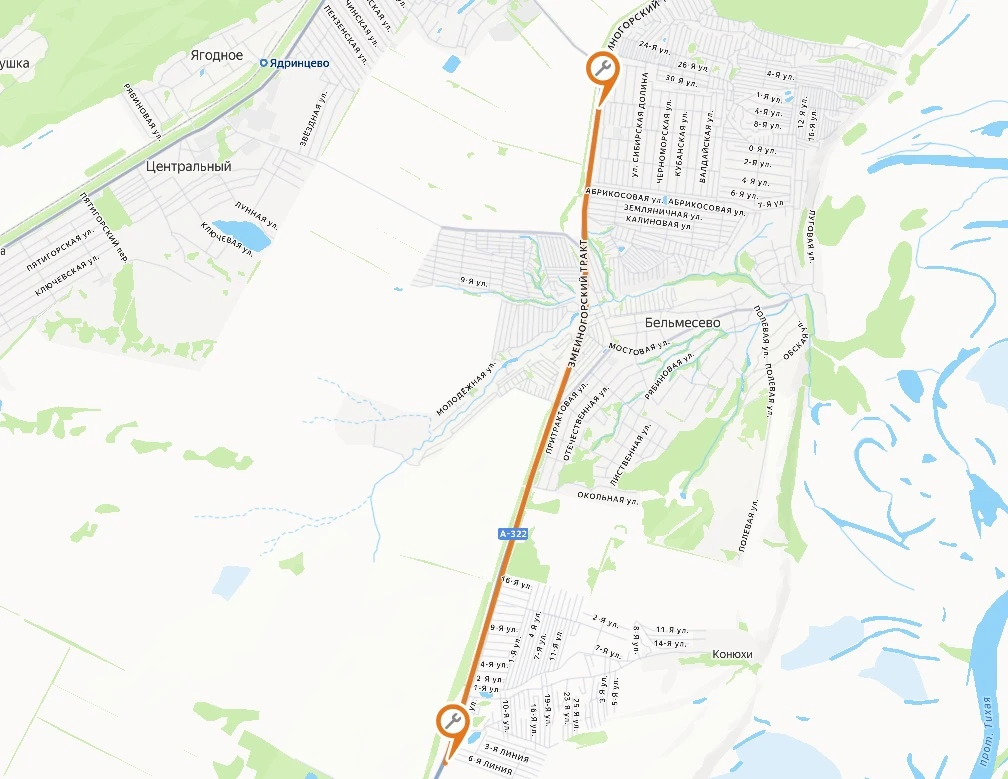 По информации ФКУ "Сибуправдор", подрядная организация выполняет устройство слоев износа на участке федеральной автомобильной дороги А-322 км 18+500 – км 26 в черте города Барнаула. Это первый объект программы ремонтных работ 2026 года на федеральной сети Алтайского края. Работы здесь продлятся до 20 мая с организацией реверсивного движения.
