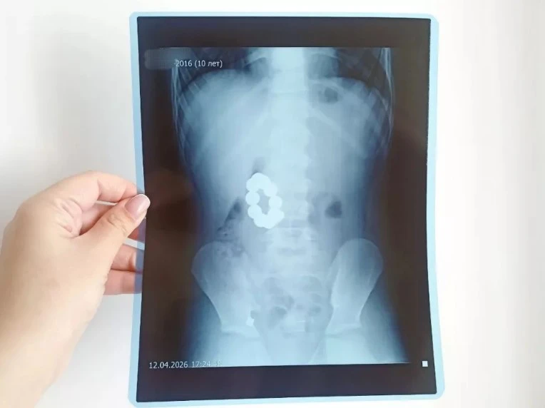 Врачи детской городской клинической больницы №7 удалили из желудка 10-летнего мальчика магнитные шарики и металлическую цепочку.