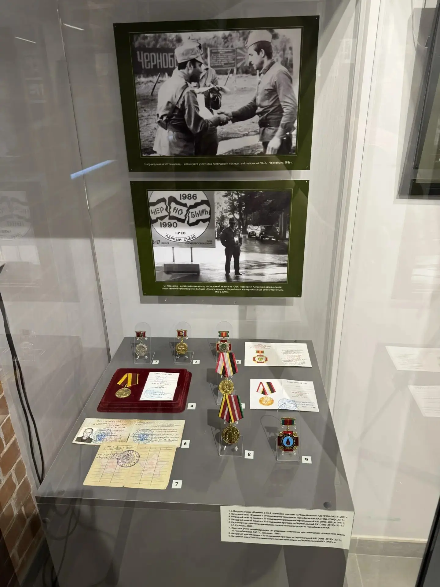 Экспозицию подготовили при участии краевой организации «Семипалатинск — Чернобыль», Музея истории АГМУ, ГУ МЧС по Алтайскому краю и Топчихинского краеведческого музея».