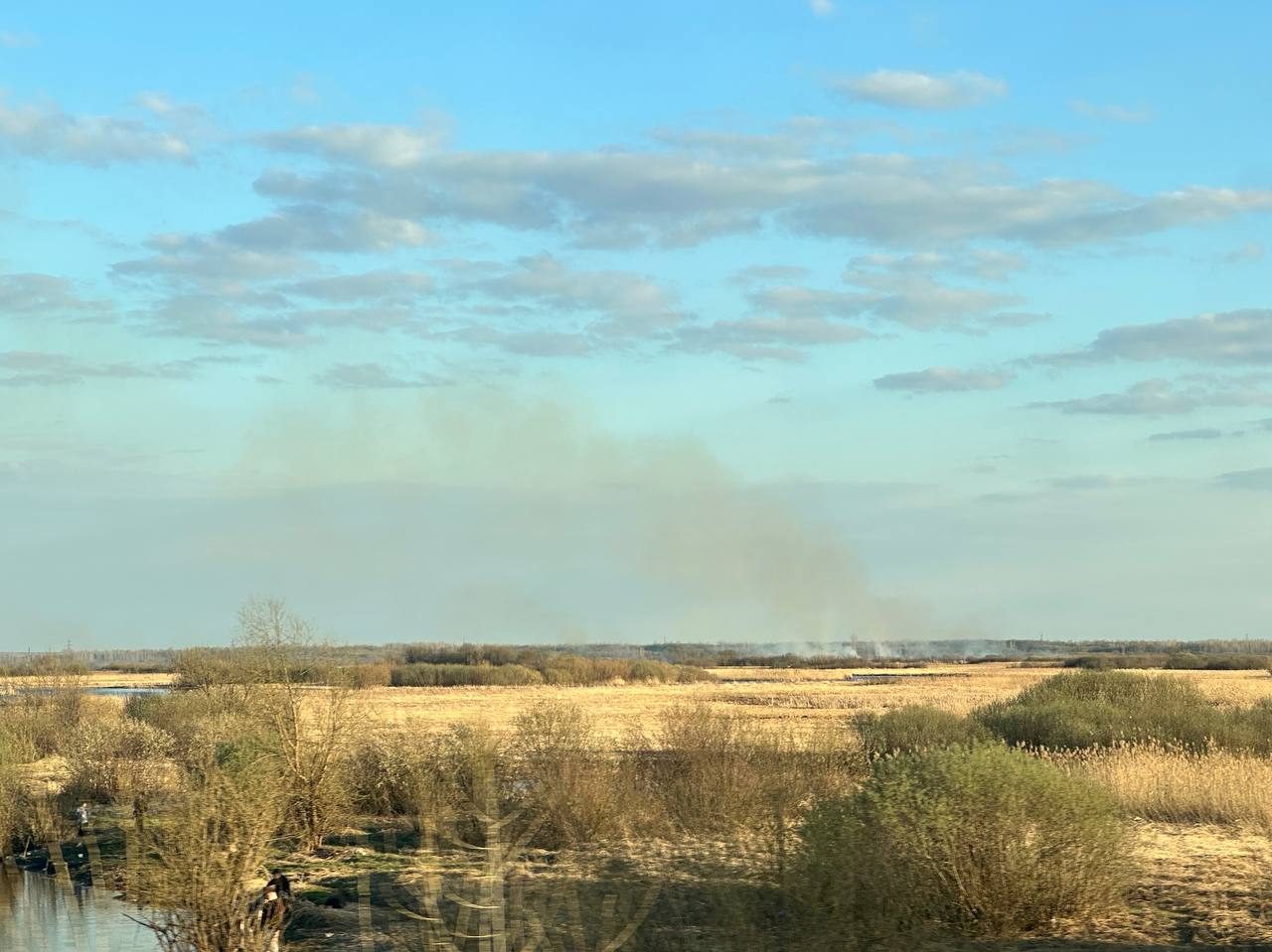 За Старым мостом горят луга, по дороге чувствуется сильный запах гари, пишут нам читатели.