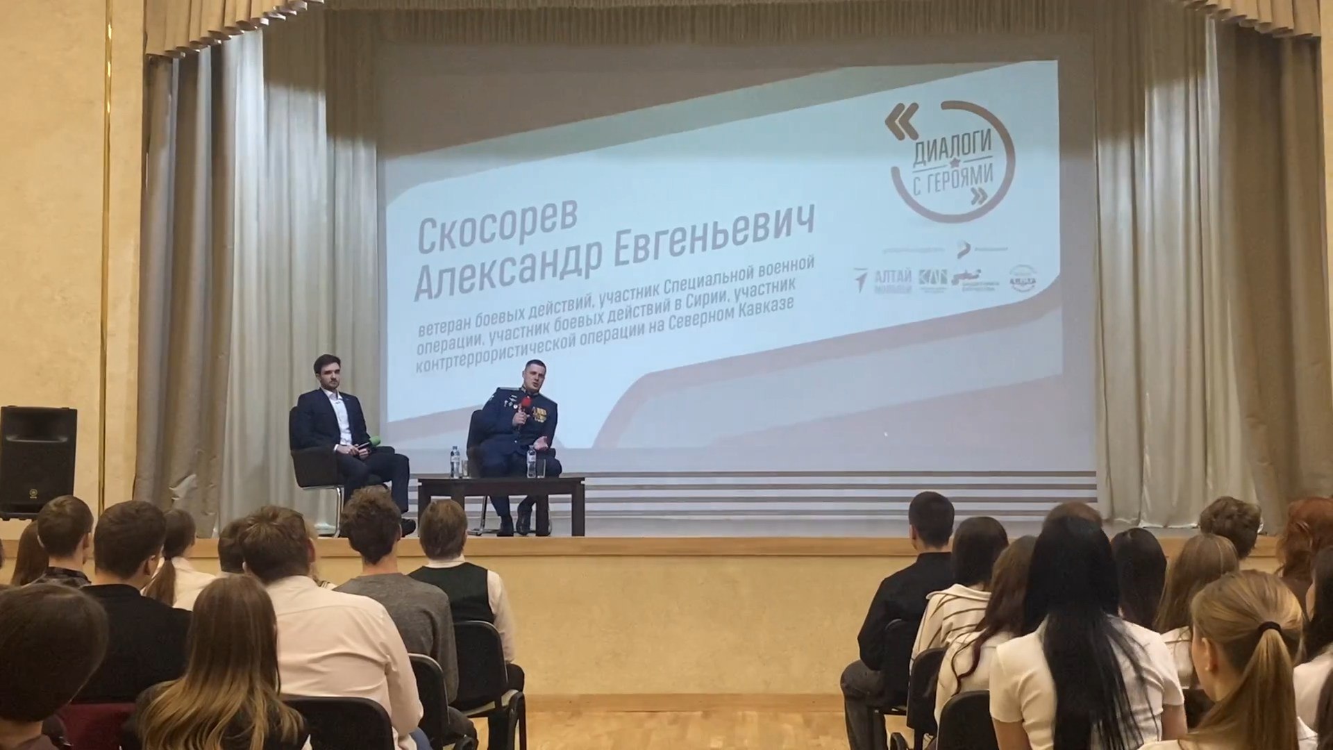 Встреча прошла в рамках всероссийского проекта «Диалоги с Героями». Организовали её Краевой дворец молодёжи и фонд «Защитники Отечества».