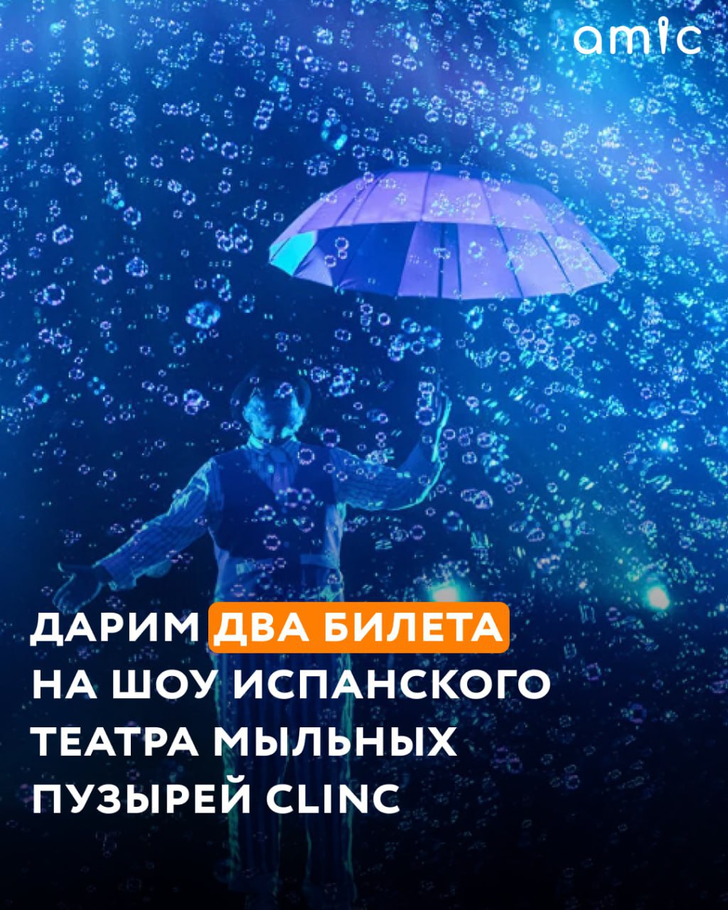 1 апреля 2026 в Барнауле выступит испанский театр мыльных пузырей CLINC. Вместе с концертным агентством «Лига Арт» мы подарим два билета на этот добрый и смешной спектакль с мыльными пузырями для детей и взрослых.