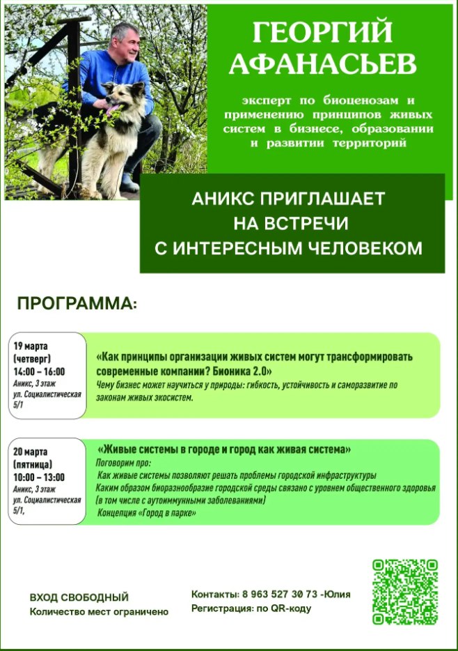 19 и 20 марта в Бийске пройдут три встречи о том, как законы природы помогают создавать устойчивые компании, здоровую городскую среду и новые отношения с землёй.