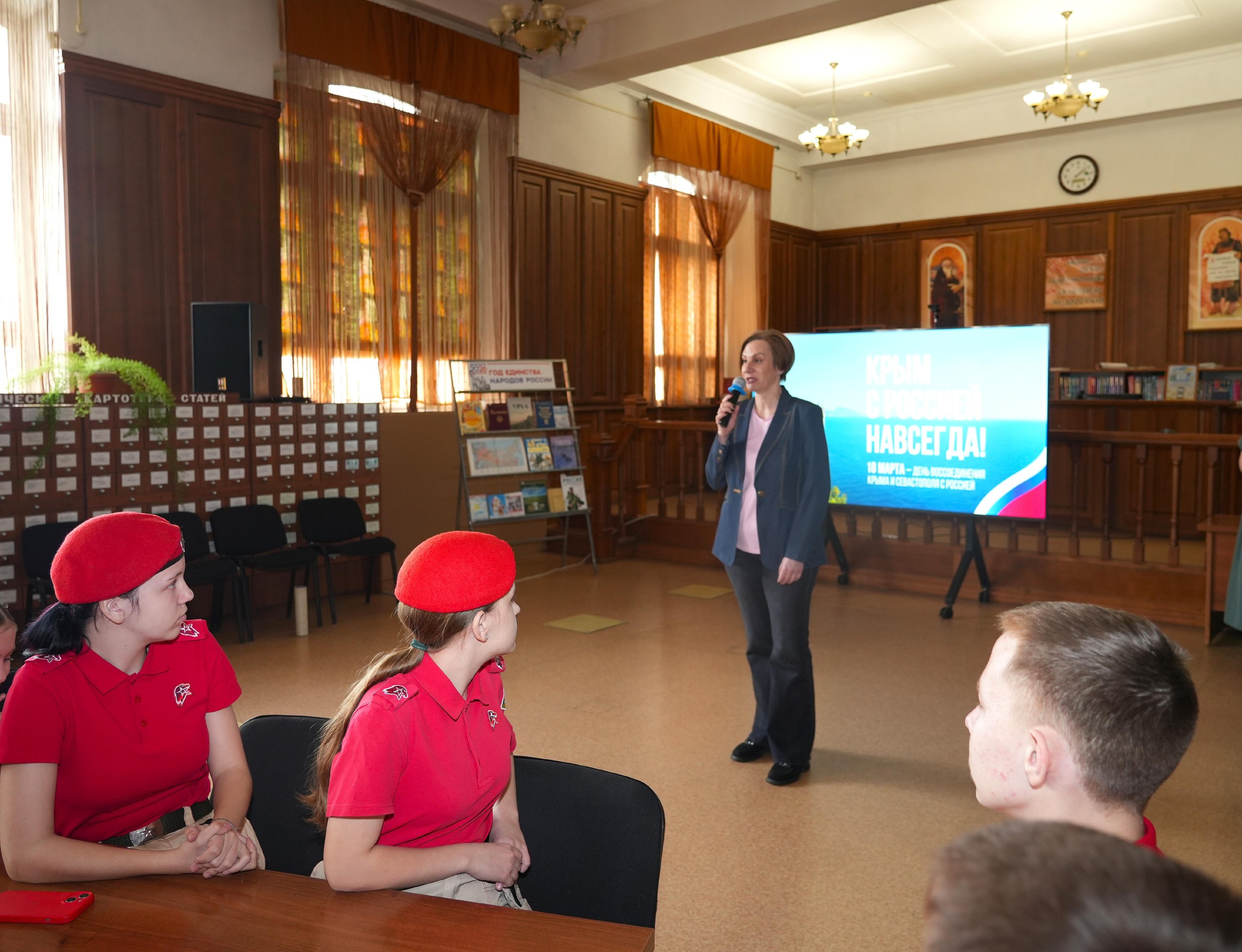 Так, в МЦ «Родина» учащиеся школы №18 погрузились в историю, посмотрев фильм о Крымском фронте. Почетным гостем события стал ветеран СВО Алексей Орлов.