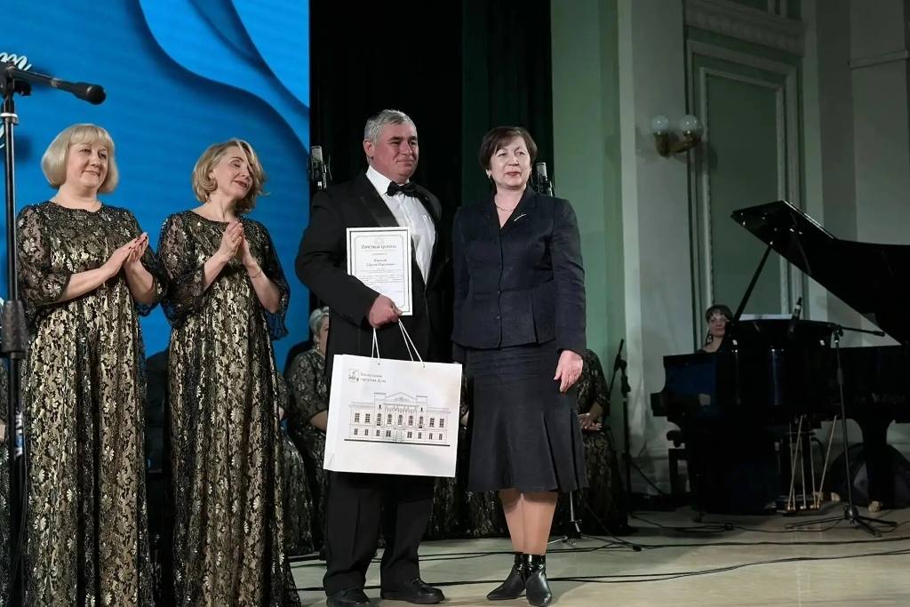 В завершение выступления Галина Буевич вручила награды Барнаульской городской Думы артисту хора Сергею Киселёву и костюмеру Татьяне Дёгтевой.