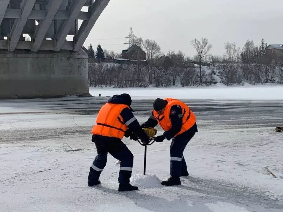 В соответствии с планом противопаводковых мероприятий на 2026 год, в Бийске с 18 марта проводится бурение льда в районе коммунального моста. Делается это с целью разряжения нагрузки льда.