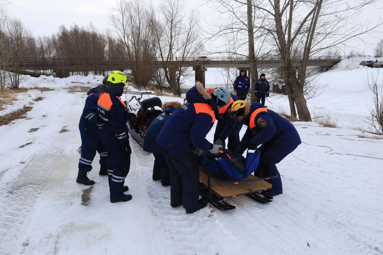 Также участники отработали оказание экстренной помощи: была организована временная переправа через разлившуюся реку и проведена эвакуация условного пострадавшего с использованием альпинистского снаряжения. В условиях подтопления применялась специализированная техника, включая снегоболотоходы и плавающий транспортер.