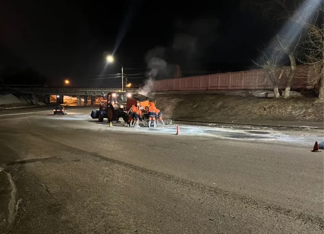 Ямочный ремонт в Барнауле продолжается. В ночь с 25 на 26 марта работы прошли на улице Аванесова и проспекте Строителей от жд переезда до моста.
