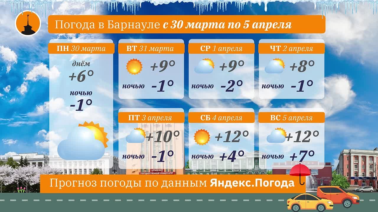 Прогноз погоды от @barnaul_press на предстоящую неделю.
