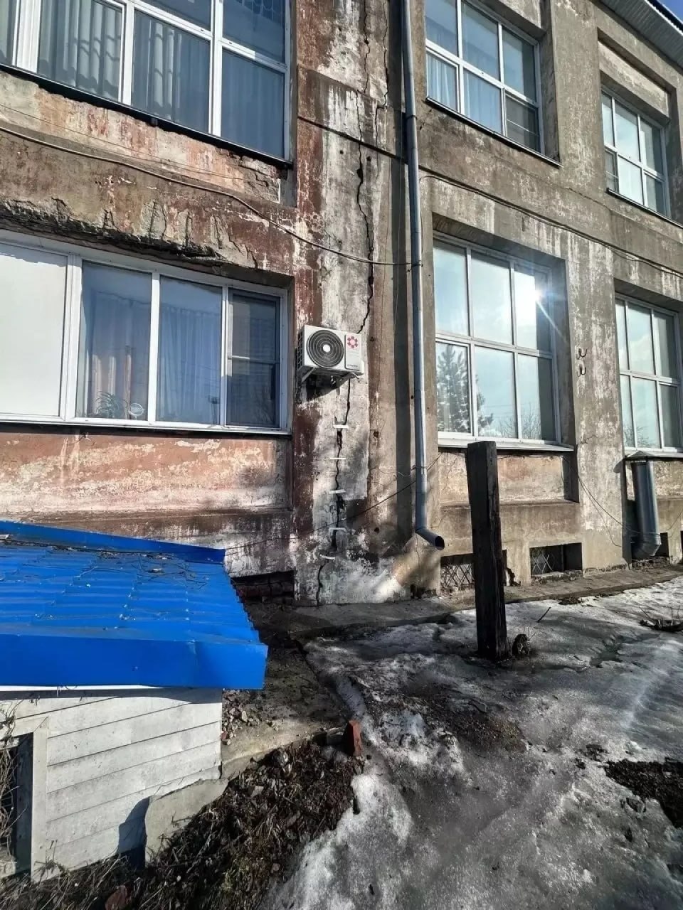Прокуратура проводит проверку. Инцидент произошел 27 марта. Судя по фото, здание сверху донизу пересекает большая трещина.