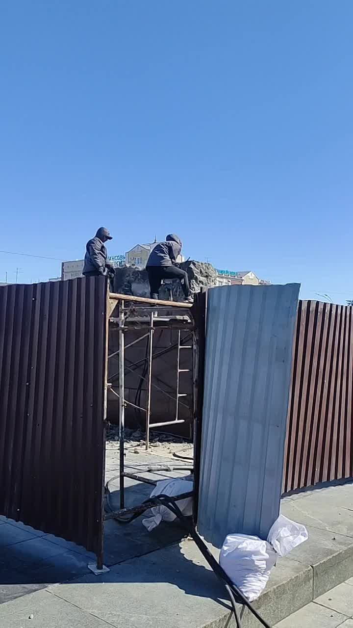 Пока Ленин отдыхает в стороне, постамент памятника начали ремонтировать.