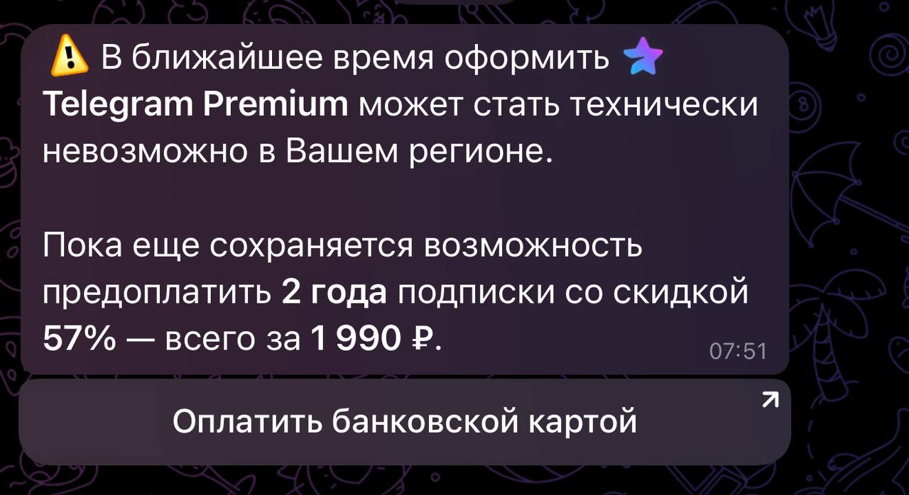 Вот такие сообщения разослал мессенджер среди пользователей с предложением внести плату за подписку на два года впрёд.