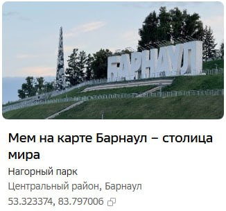 Локальные шутки сервис запустил к 1 апреля. Чтобы их найти, нужно просто ввести в поиске «мемы на карте» — и откроются городские легенды.