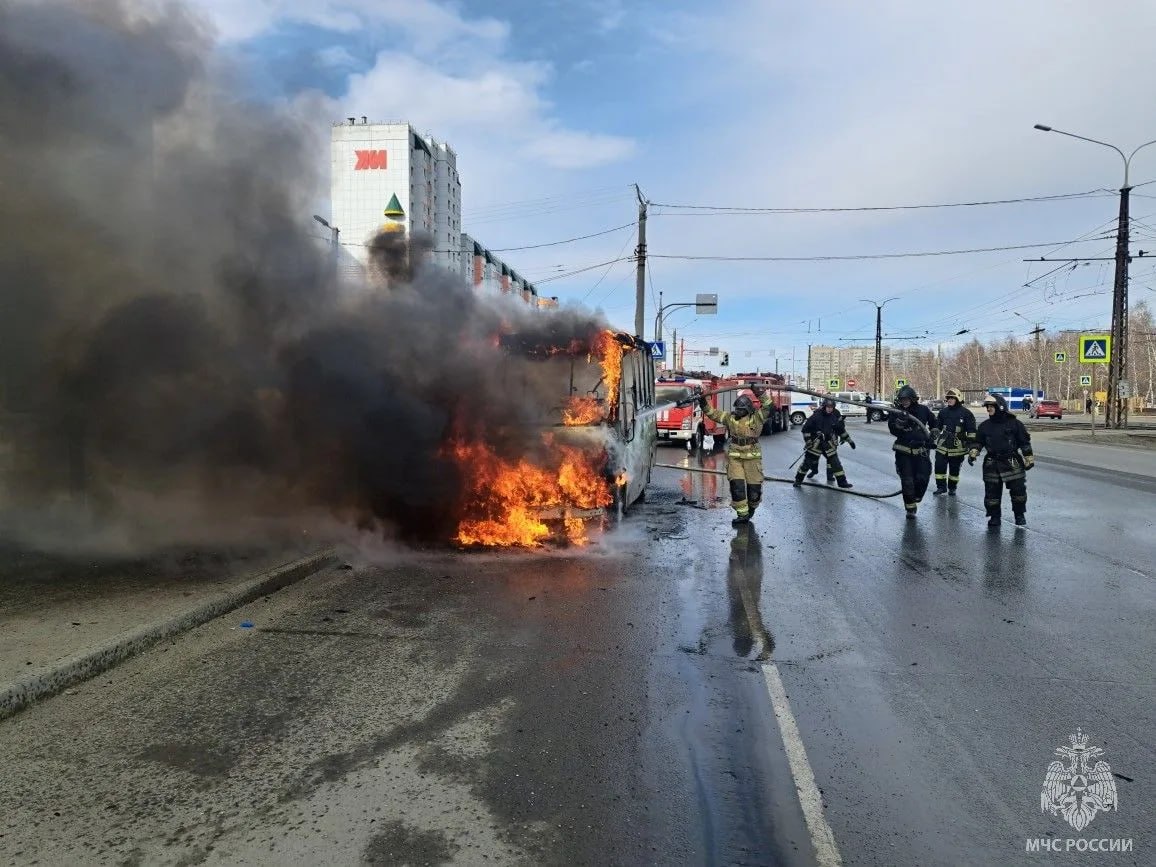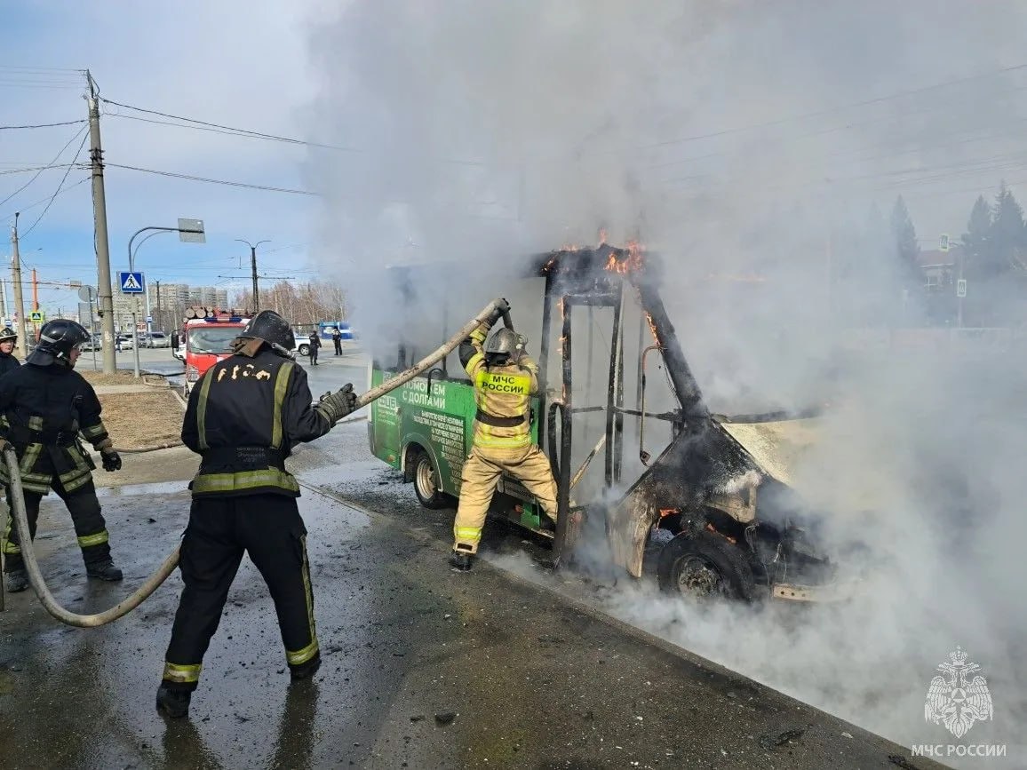 Возгорание маршрутного автобуса произошло по ул. Малахова. Люди покинули транспортное средство самостоятельно до прибытия подразделений, пострадавших нет.