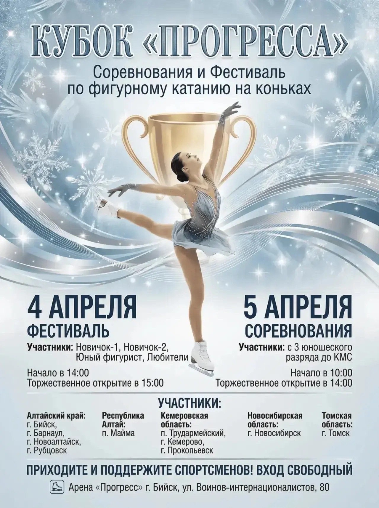 4-5 апреля на Ледовой арене прогресс пройдет городской фестиваль и соревнования по фигурному катанию на коньках «Кубок Прогресса»