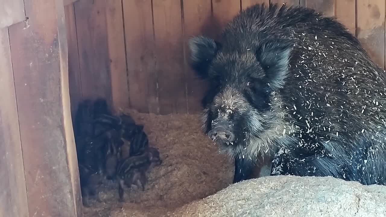В семье диких кабанов из Барнаульского зоопарка — пополнение!