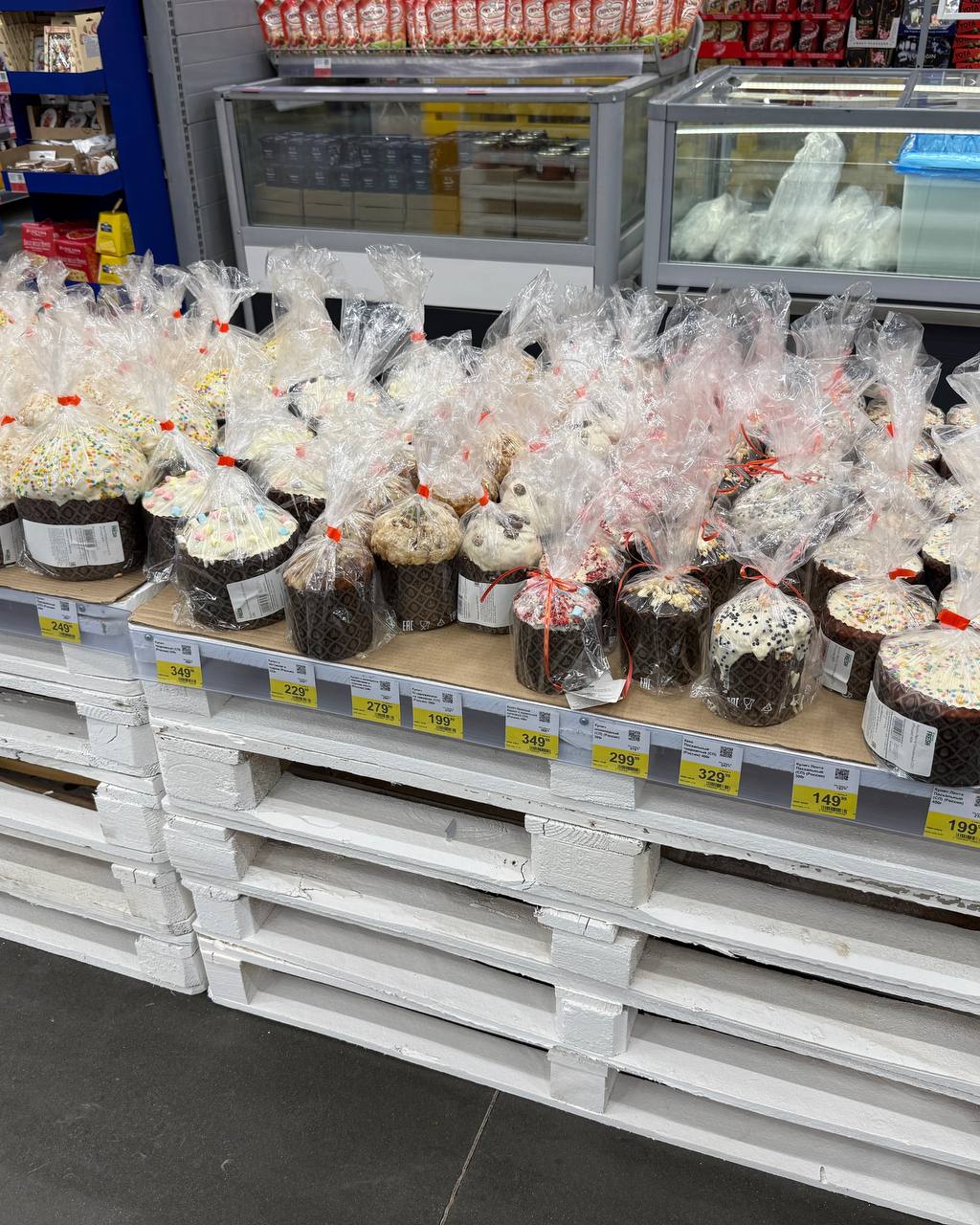 Найти праздничную выпечку можно почти везде: от "Ленты" до "Fix Price". Цены — на любой кошелёк: есть варианты дешевле 100 рублей, а есть и за 300+. Какой из них вкуснее — вопрос открытый, тут лучше проверять лично.