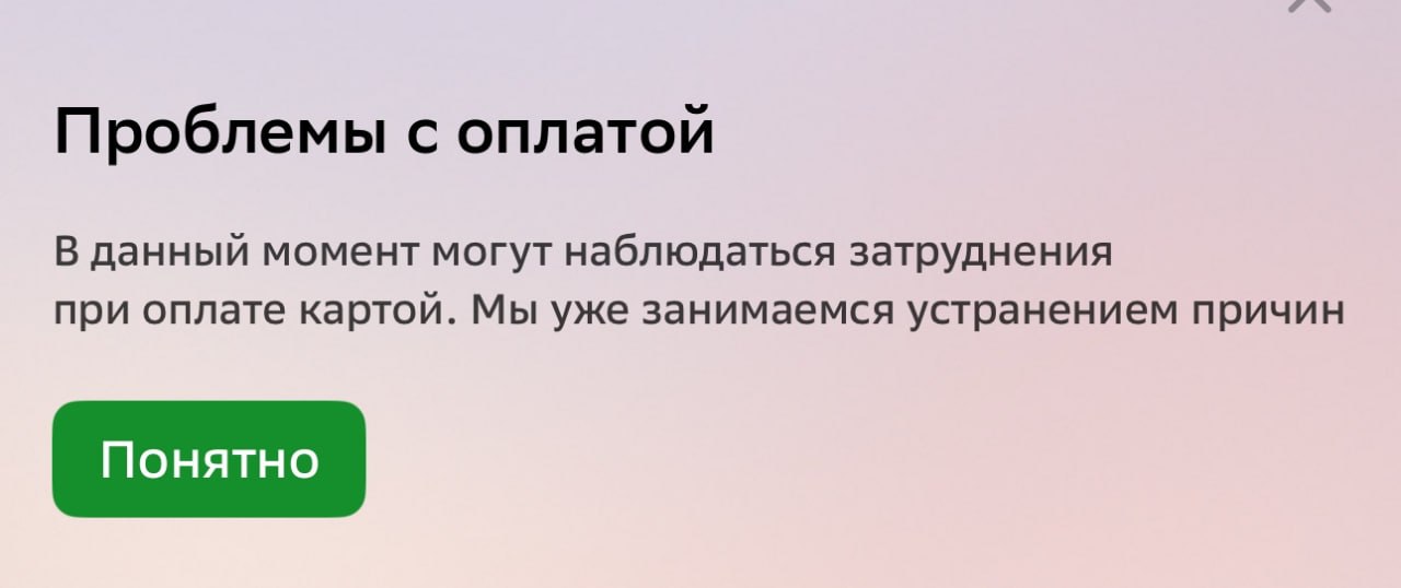 В приложении "Сбербанка" появилось сообщение о том, что в данный момент могут наблюдаться затруднения при оплате картой.