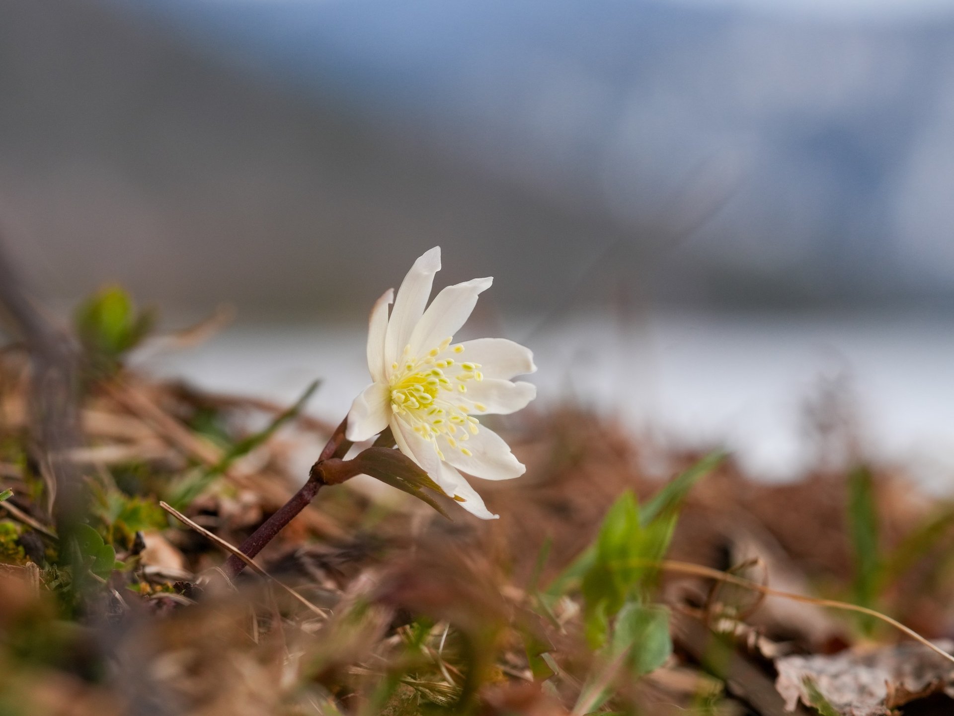 На берегах Телецкого озера в Алтайском заповеднике зацвела ветреница алтайская — белоснежные цветы с легким фиолетово-розовым оттенком.