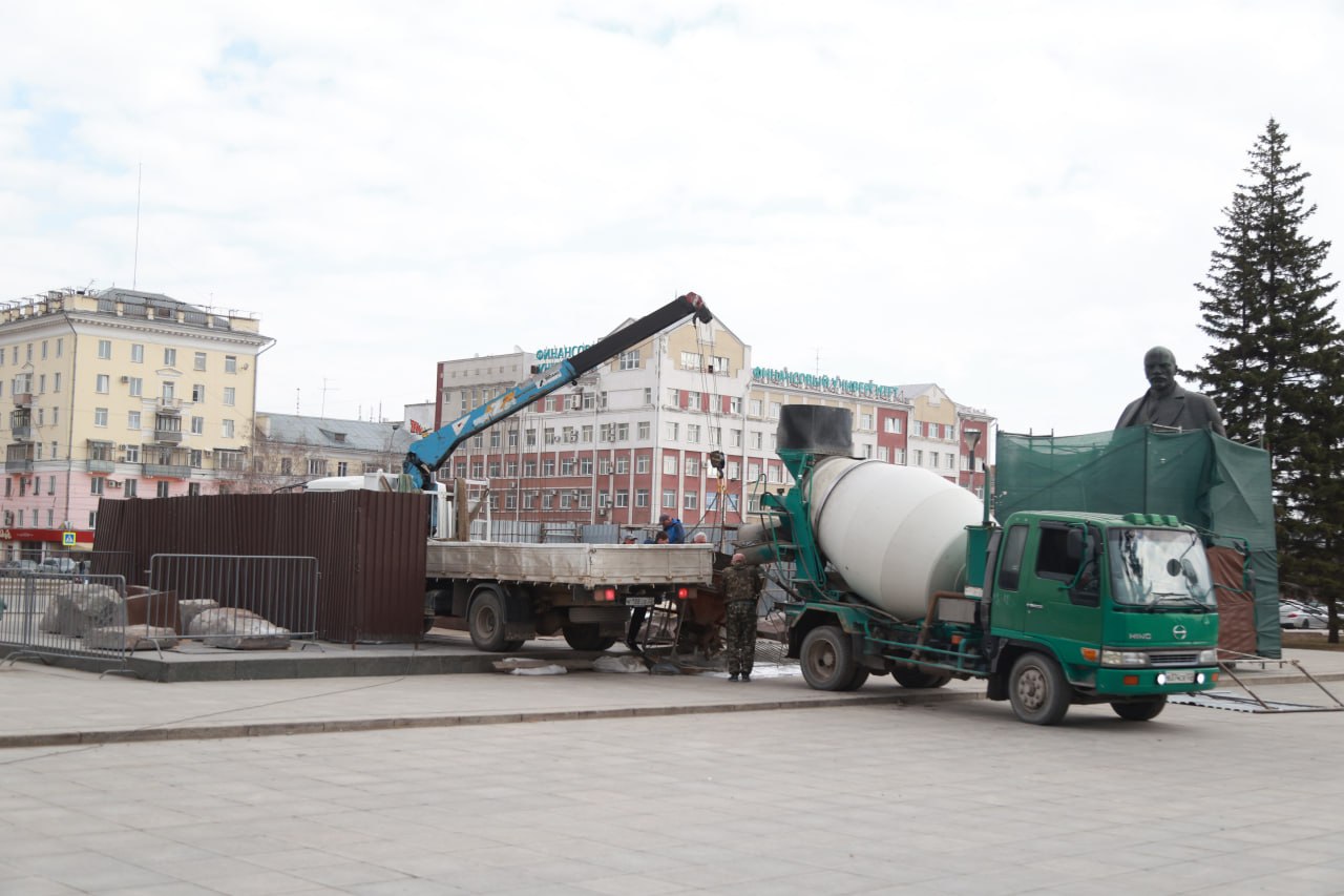 В центре Барнаула продолжается ремонт постамента памятника Ленину