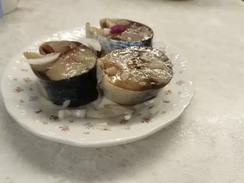 Сначала собираем?? рассол: доводим воду с солью, сахаром и специями до кипения, потом снимаем с огня и даём остыть. Затем рыбу подготавливаем: слегка размораживаем, удаляем голову, плавники и внутренности, промакиваем и нарезаем крупными кусками.