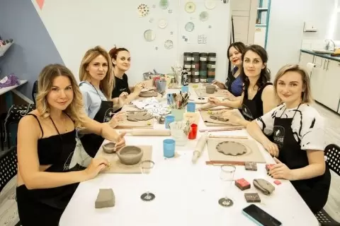 Здесь можно не просто отметить важное событие, а наполнить его ощущением совместного творчества: участники украшают изделия буквами и узорами, затем мастер помогают покрыть их глазурью и обжечь в печи, чтобы получить готовую к использованию посуду.