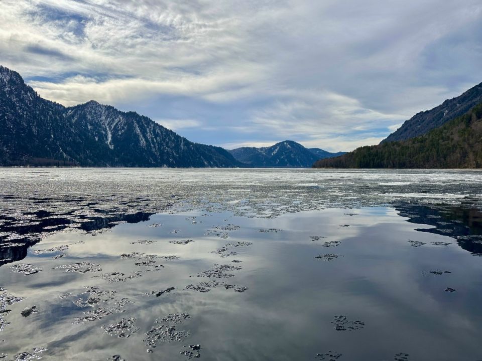 С началом апреля лёд активно тает. В широтной части озера ледовая кромка отступила от мыса Ажи до мыса Кумзир почти на 4 км всего за несколько дней. Оставшиеся участки льда покрыты трещинами и распадаются на фрагменты, рассказали сотрудники Алтайского заповедника.