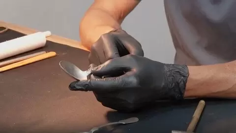 Примером может служить работа с набором столовых приборов — вилкой, ложкой из 1950-х и ложкой 1878 года, выполненной по модели Фаберже. После очищения специальной жидкостью, которая удаляет окислы, сможет быть выявлено состояние поверхности. Оказывающееся на приборе черные пятнышки отлично поддаются полировке.